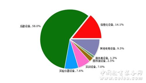 9月份教育裝備行業(yè)招標(biāo)采購信息分類占比情況如圖1所示:后勤設(shè)備招標(biāo)采購信息共計2551條,占58.03%;信息化設(shè)備招標(biāo)采購信息共計621條,占14.13%;實驗儀器設(shè)備招標(biāo)采購信息共計332條,占7.55%;實訓(xùn)設(shè)備招標(biāo)采購信息共計307條,占6.98%;圖書館設(shè)備招標(biāo)采購信息共計110條,占2.50%;音體美設(shè)備招標(biāo)采購信息共計57條,占1.30%;其他專用設(shè)備招標(biāo)采購信息共計418條,占9.51%。