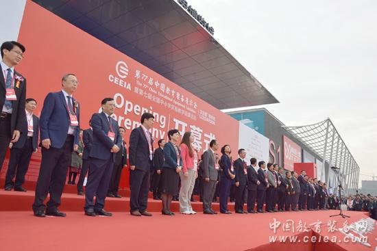 2019年10月12日上午,在《我和我的祖國》快閃活動深情飽滿的表演中,第77屆中國教育裝備展示會在中鐵·青島市世博城國際展覽中心盛大開幕。本屆展示會由中國教育裝備行業協會主辦,山東省教育廳、青島市人民政府共同承辦,各省、自治區、直轄市及計劃單列市教育裝備行業協會協辦。