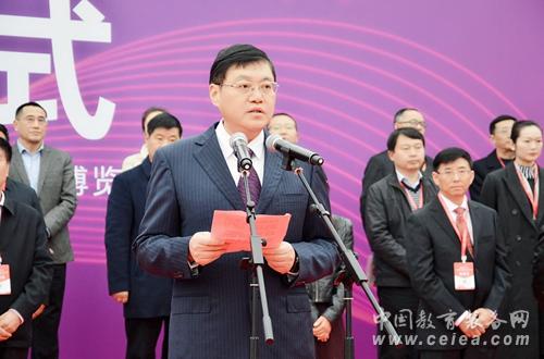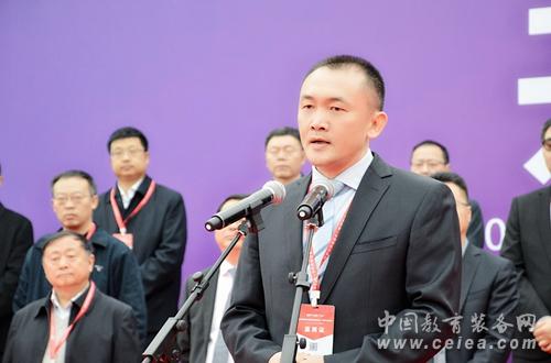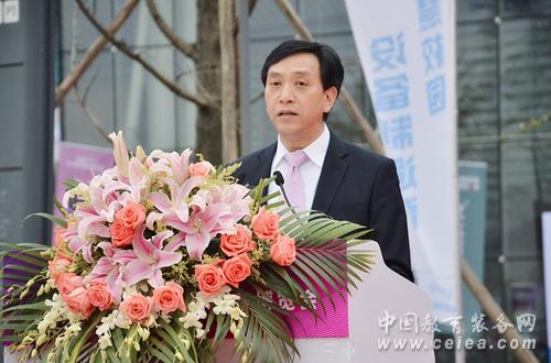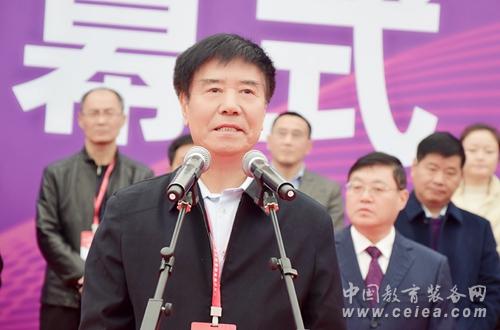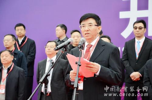 ▲教育部關心下一代工作委員會常務副主任、中國教育裝備行業協會會長王富發表講話并宣布博覽會開幕