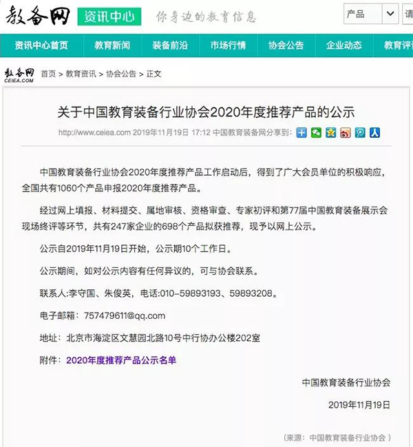 據悉,此次全國共有1060個產品申報評選,經過網上填報、材料提交、屬地審核、資格審查、專家初評和第77屆中國教育裝備展示會現場終評等環節,共有247家企業的698個產品擬獲推薦。