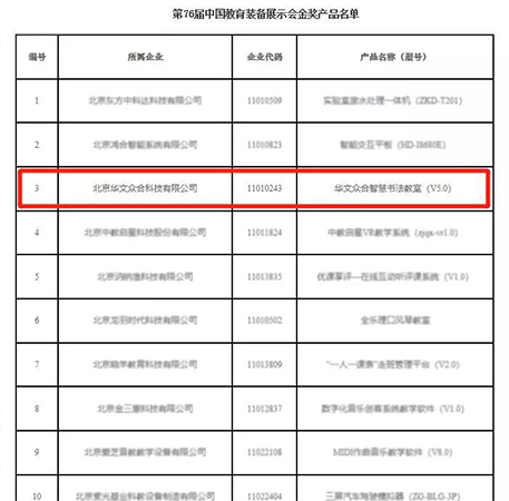 此前,華文眾合智慧書法教室入選2018年度中國教育裝備行業協會推薦產品,2019年榮獲第76屆中國教育裝備展示會金獎產品。