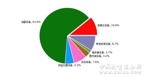 11月份教育裝備行業(yè)中標(biāo)信息分類占比情況,如圖7所示:后勤設(shè)備中標(biāo)信息量共計2271條,占62.87%;信息化設(shè)備中標(biāo)信息量共計390條,占10.80%;實訓(xùn)設(shè)備招中標(biāo)信息量共計273條,占7.56%;實驗儀器設(shè)備中標(biāo)信息量共計187條,占5.18%;圖書館設(shè)備中標(biāo)信息量共計115條,占3.18%;音體美設(shè)備中標(biāo)信息量共計61條,占1.69%;其他專用設(shè)備中標(biāo)信息量共計315條,占8.72%。