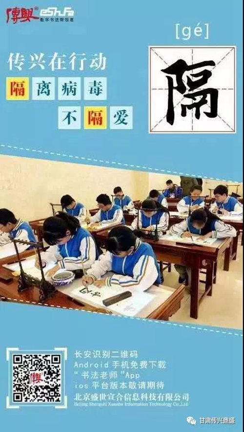 北京盛世宣合信息科技有限公司歷經(jīng)十年研發(fā)的“傳興書法數(shù)字化教學(xué)系統(tǒng)”,作為本次活動(dòng)“中小學(xué)(英語、閱讀、書法)產(chǎn)品”系列,甘肅傳興鼎盛科技有限公司迅速響應(yīng)北京總公司的統(tǒng)一組織,積極協(xié)同,服務(wù)聯(lián)動(dòng),以各種信息平臺(tái)提請(qǐng)各位老師、家長(zhǎng)和孩子們,以及書法愛好者關(guān)注此項(xiàng)活動(dòng)的方式及內(nèi)容,加入免費(fèi)分享“”傳興書法老師App”指導(dǎo)學(xué)習(xí)行列,方便學(xué)習(xí)者居家跟書法名家學(xué)書法,認(rèn)知書法文化,以手機(jī)或電腦真切體會(huì)數(shù)字信息及互聯(lián)網(wǎng)技術(shù)與傳統(tǒng)書法教育有機(jī)融合,所呈現(xiàn)的科學(xué)性、系統(tǒng)性和適用性的信息科技化教學(xué)新模式。