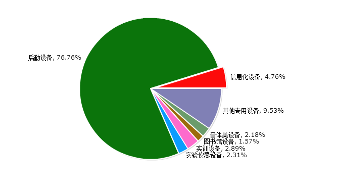 截至2020年7月31日教育裝備網共收集招標采購信息有效數據4512條。根據7月份收集到的教育裝備招標采購信息(見圖1):后勤設備信息量為3560條,占全部信息量的76.76%;其他專用設備信息量為442條,占全部信息量的9.53%;信息化設備信息量為221條,占全部信息量的4.76%;實訓設備信息量為134條,占全部信息量的2.89%;實驗儀器設備信息量為107條,占全部信息量的2.31%;音體美設備信息量為101條,占全部信息量的2.18%;圖書館設備信息量為73條,占全部信息量的1.57%。