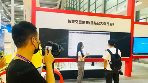 把智慧教室在展會現(xiàn)場中進(jìn)行真實還原,無疑是鴻合科技展區(qū)中的最大亮點。鴻合智慧教室解決方案充分融合了大尺寸全貼合鴻合智能交互黑板,以及多媒體課堂中的各種軟硬件產(chǎn)品,實現(xiàn)交互式教學(xué)體驗,吸人眼球。配合鴻合現(xiàn)場工作人員的精彩講解,讓觀眾置身智慧化的教學(xué)場景中,真正參與課前、課中、課后整個教學(xué)過程,以“學(xué)生”視角全方位感受鴻合智慧互動課堂的無限魅力。