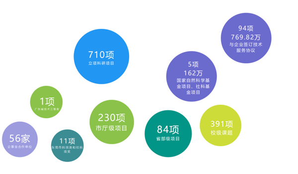 學(xué)校科研項目立項710余項,其中國家自然科學(xué)基金項目3項,國家社科基金項目2項,獲資助經(jīng)費162萬。與56余家企事業(yè)單位建立合作關(guān)系,簽訂技術(shù)服務(wù)協(xié)議94項,總經(jīng)費達到769.82萬元。