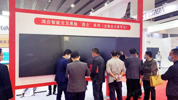走進鴻合展區(qū),兩款鴻合智能交互黑板吸引了眾多參觀者的目光。鴻合智能交互黑板“泰山”系列,采用全貼合工藝及納米電容觸控技術,將高品質防眩光鋼化玻璃面板與觸摸屏完美融合,可視角度達178°,即使強光之下,學生坐在角落仍可清晰看見黑板上的顯示內容。