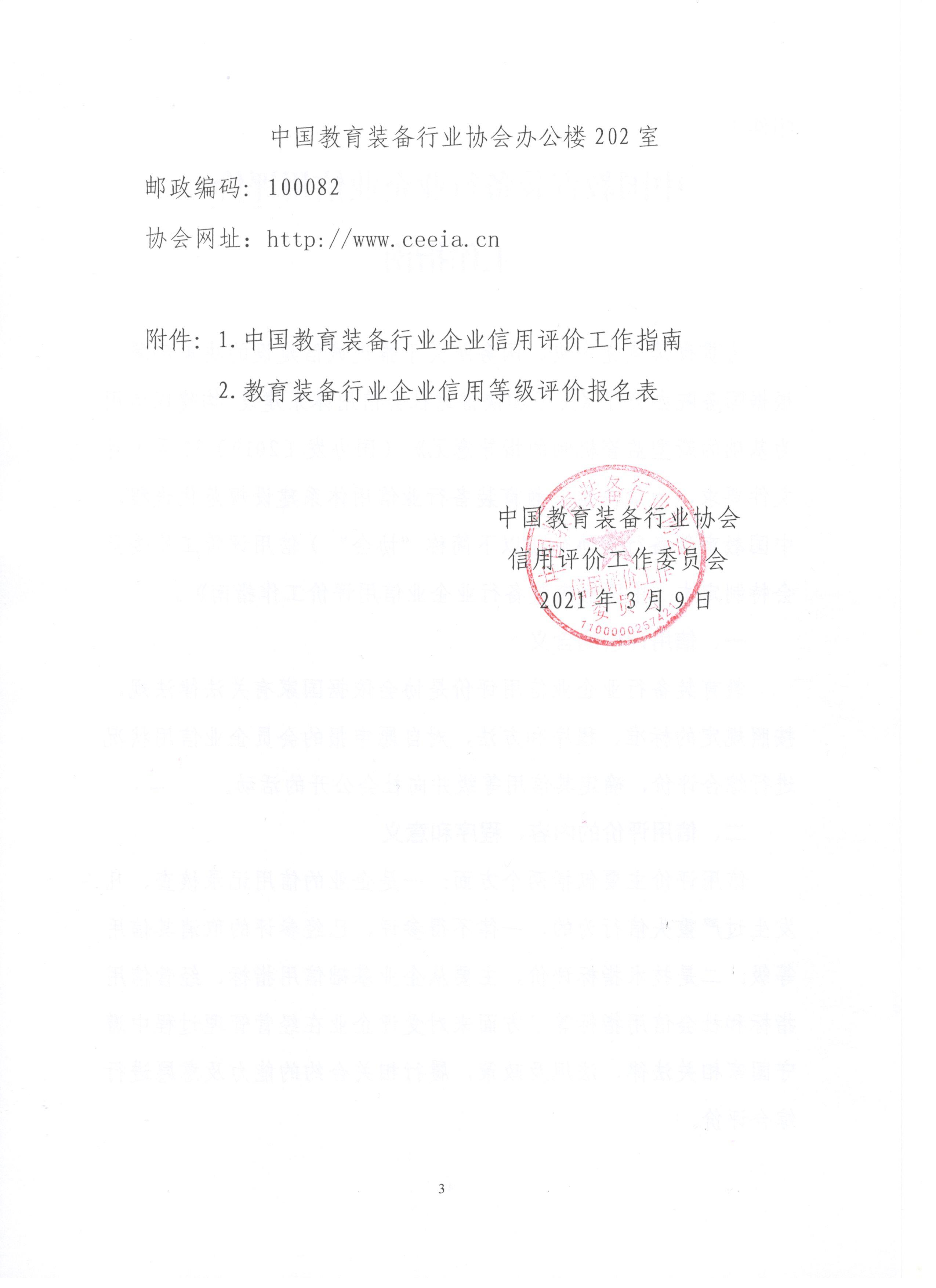 中國教育裝備行業(yè)協(xié)會信用評價工作委員會關于開展2021年教育裝備行業(yè)企業(yè)信用等級評價工作的通知