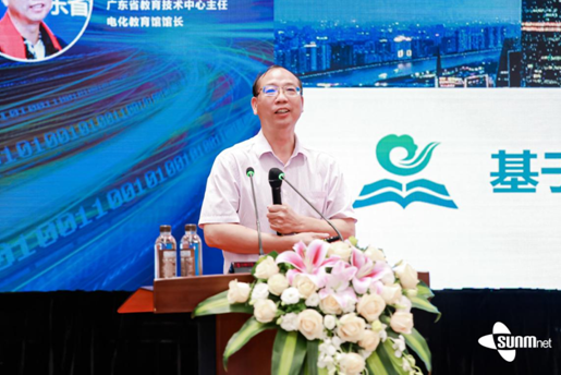 廣東省教育技術中心主任、電化教育館館長唐連章帶來題為《基于人人通空間的教育信息化生態的構建》的主題報告。他詳細剖析了“為什么要建人人通空間、人人通空間可解決哪些問題、基于人人通空間的教育信息化生態”三項內容,指出要通過數據生態和服務生態,沉淀所有教與學數據,從而支持教育信息化新生態。