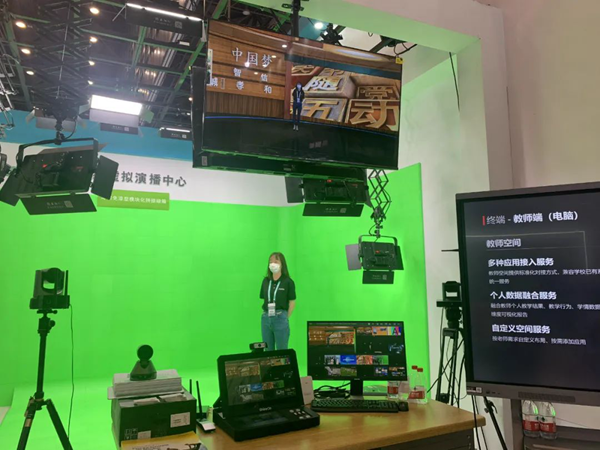 本次展出的三維虛擬演播中心可實現采、編、播、存、管、演、教一體化;真三維虛擬布景,實現機位推拉搖移,豐富的真三維虛擬場景;支持無軌和有軌虛擬演播室,根據環境任意搭配;精細摳像效果,多場景靈活切換,虛擬景深效果等。
