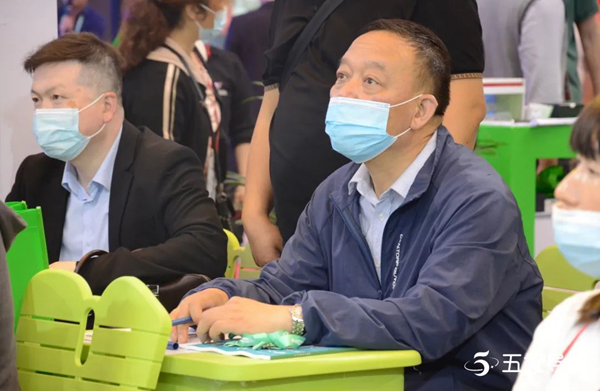 ▲ 長治市教育局電教館館長郭志剛蒞臨五好導學展位傾聽產品講解,并對五好導學在一線的應用給予了高度評價。