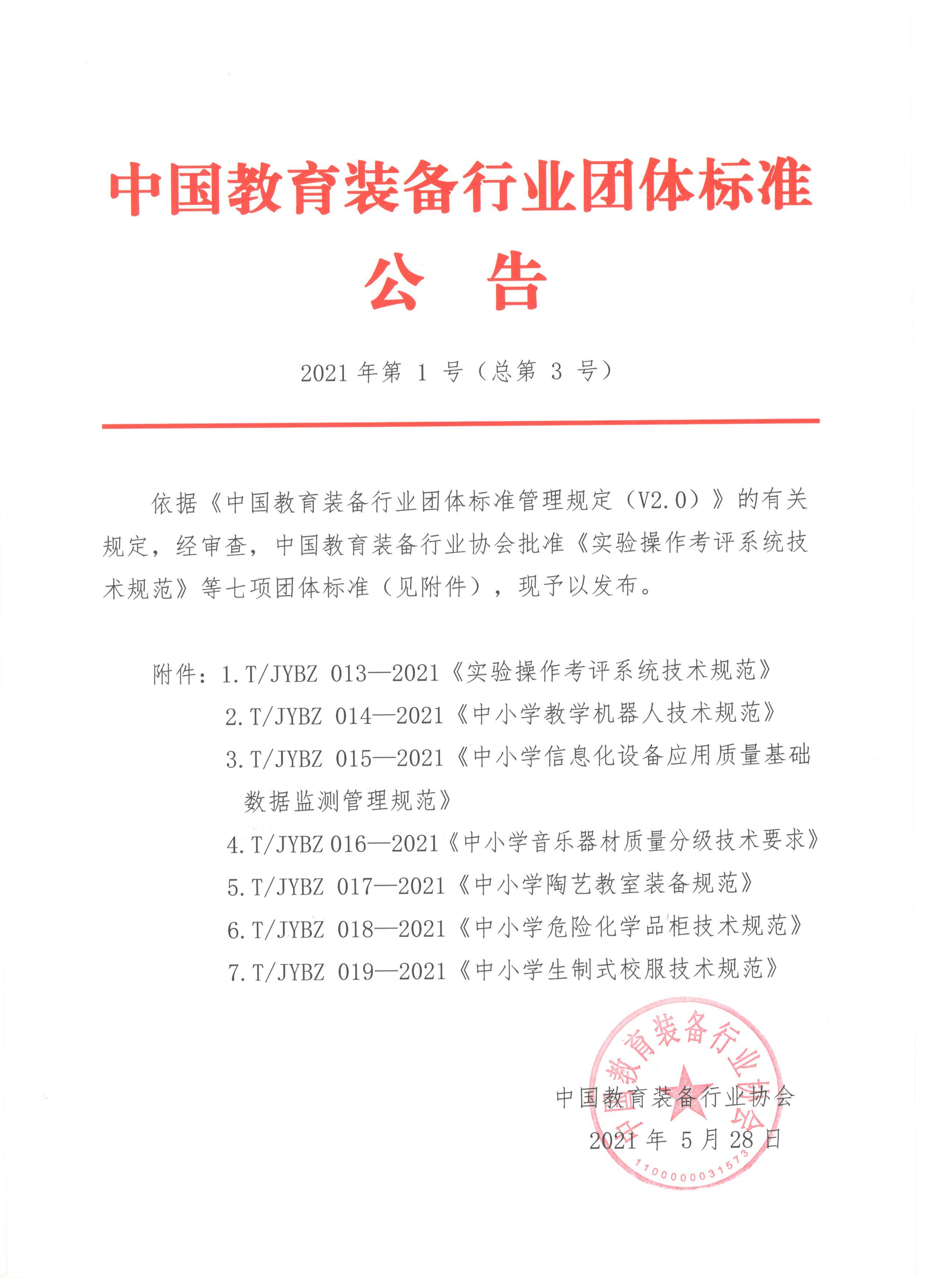 中國教育裝備行業團體標準公告