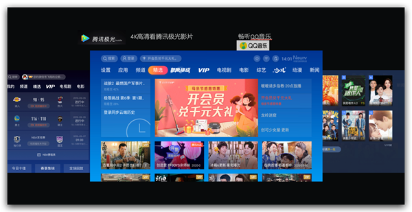 內(nèi)建安卓9.0智能系統(tǒng),搭載騰訊極光視頻源,歐洲杯,奧運(yùn)會(huì),電影大片,電視劇,綜藝,少兒,專題等內(nèi)容網(wǎng)絡(luò)天下。初次語音搜索歌曲 即自動(dòng)安裝QQ音樂。