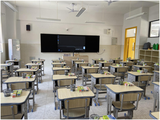 二零二零年疫情結束后,浙江麗水云和縣文元育英中學迎來了復學返校的同學,校園重返活力。有了前期的返校疫情防控應急演練,復學返校秩序井然,學子們驚喜地發現老師里多了電子黑板。