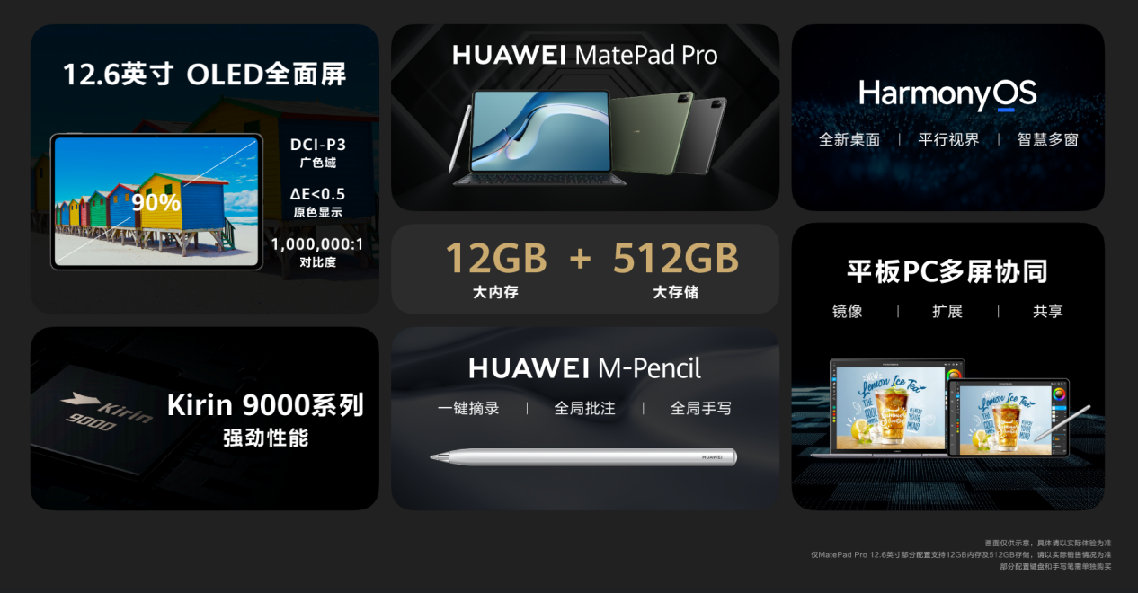 同時,華為MatePad系列為用戶帶來Flexcil筆記和PDF、享做筆記、云記三款筆記類應用專屬VIP會員權益,讓辦公、學習更加得心應手。此外,華為MatePad Pro 12.6英寸推出12GB + 512GB的套裝版本,大內存與大存儲的全新配置讓辦公人士在處理多任務重載工作時更能從容應對。全新套裝內含HUAWEI M-Pencil第二代手寫筆和智能磁吸鍵盤,有5G、WLAN兩個版本。