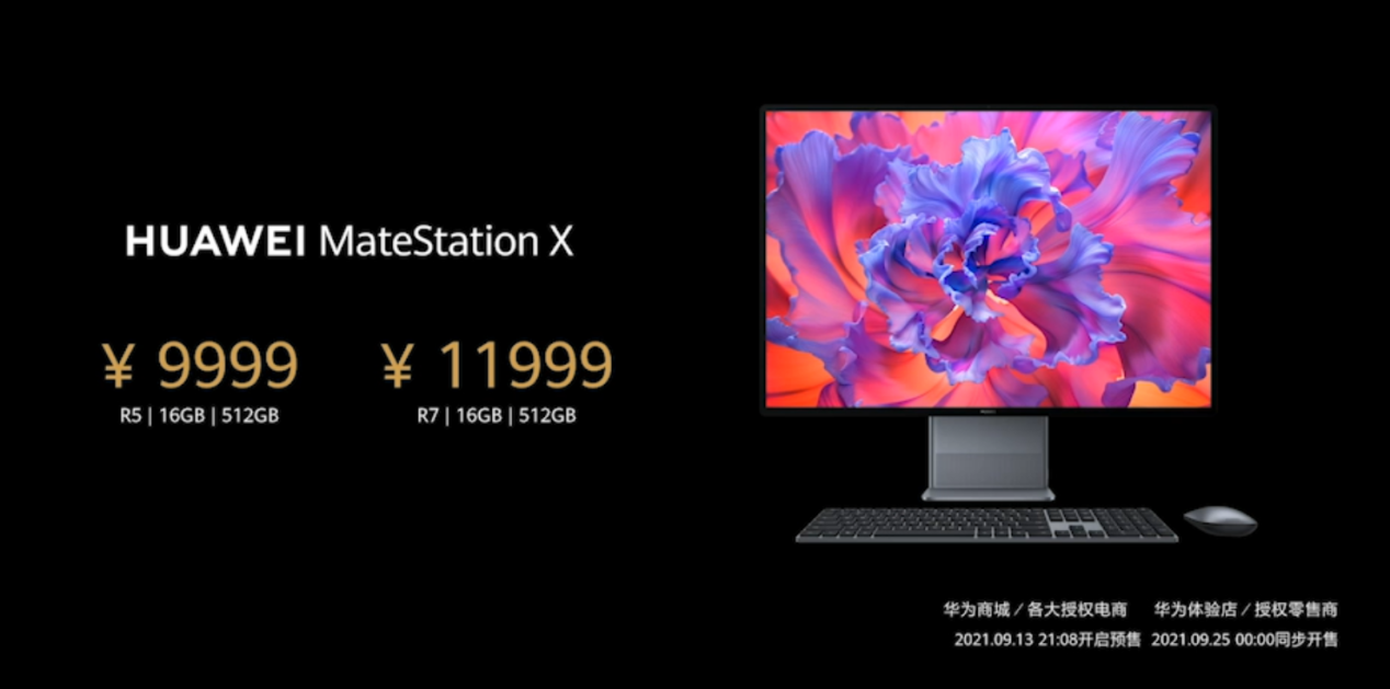 華為MateStation X一體機R5/16GB/512GB版售價9999元,R7/16GB/512GB版售價11999元,2021年9月13日21:08華為MateStation X開啟預售,9月25日0點正式開售。首銷當天購買可享受200元優惠,曬單更有機會獲得華為拓展塢。