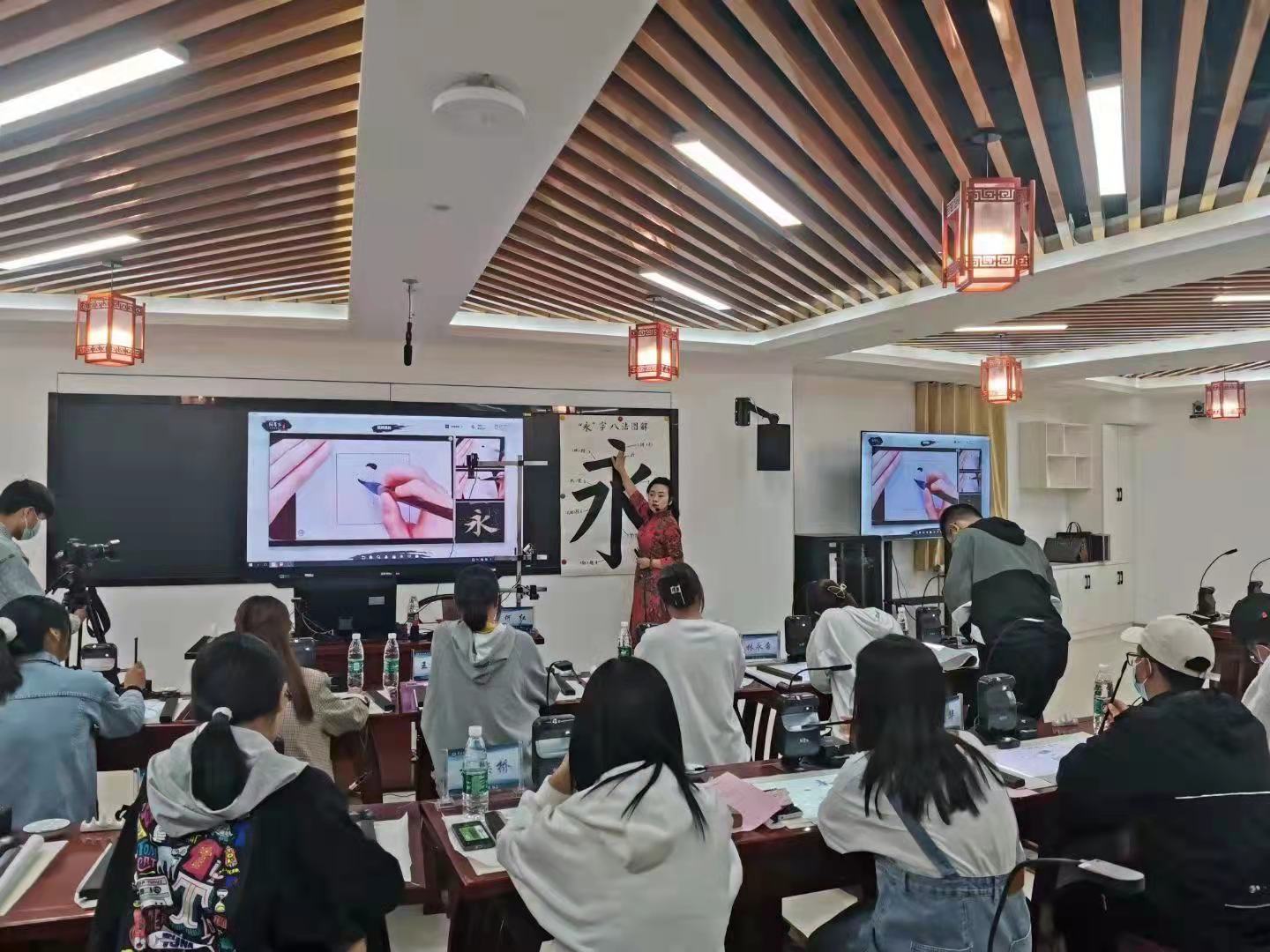 羿飛教育經(jīng)過半年的精心規(guī)劃和設(shè)計(jì),打造了目前最現(xiàn)代化的智慧書寫中心,實(shí)現(xiàn)了校方全部預(yù)期功能。在中心的啟用儀式上,美術(shù)學(xué)院何紅教授現(xiàn)場進(jìn)行書法教學(xué)演示,為師范生上了一堂別開生面的書法課。