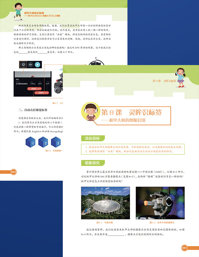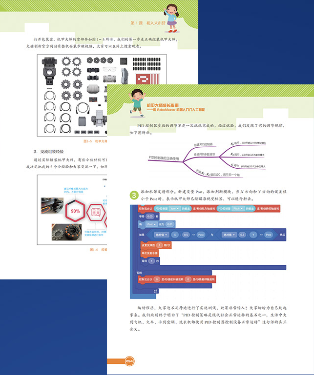 《機(jī)甲大師成長(zhǎng)指南——用 RoboMaster 機(jī)器人入門人工智能》一書,從日常生活出發(fā),凸顯“做中學(xué)”的教育理念,利用大疆創(chuàng)新教育機(jī)器人RoboMaster S1,通過一個(gè)個(gè)生動(dòng)有趣的探究與實(shí)踐活動(dòng)展開課程設(shè)計(jì),突出了生活性和 趣味性,為剛剛接觸人工智能教育的學(xué)生提供了一系列可選的人工智能體驗(yàn)活動(dòng)。