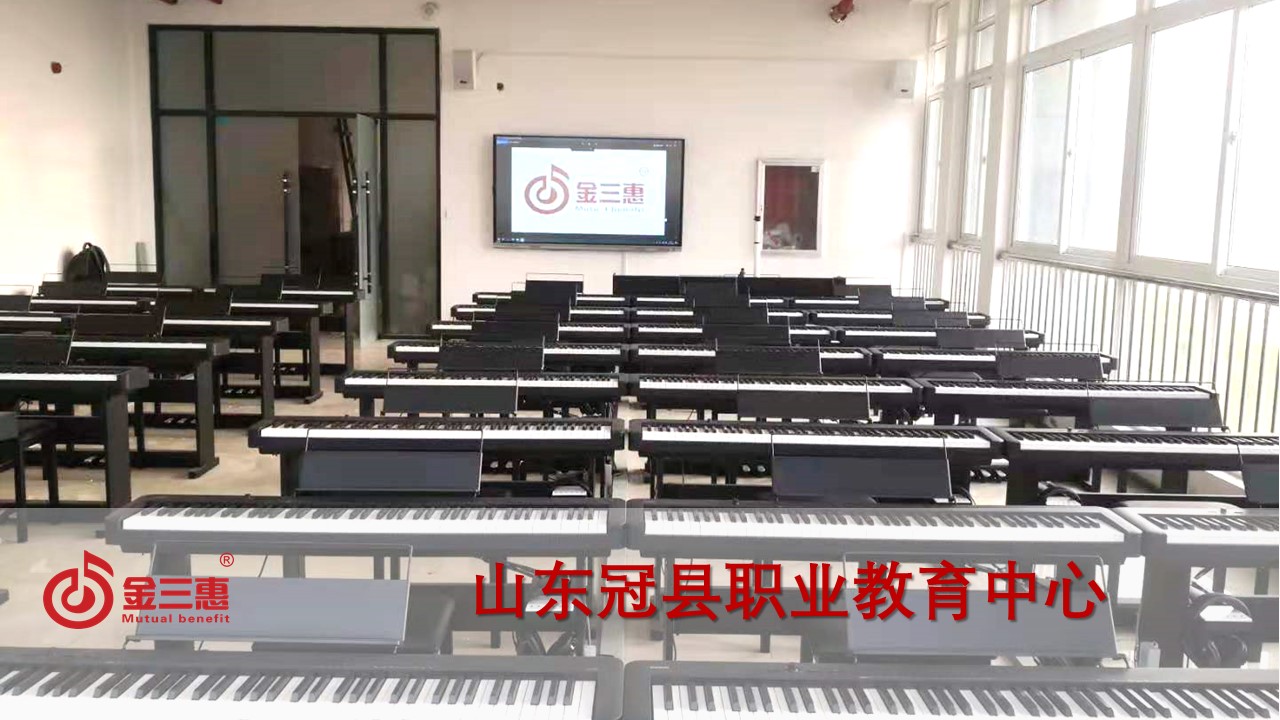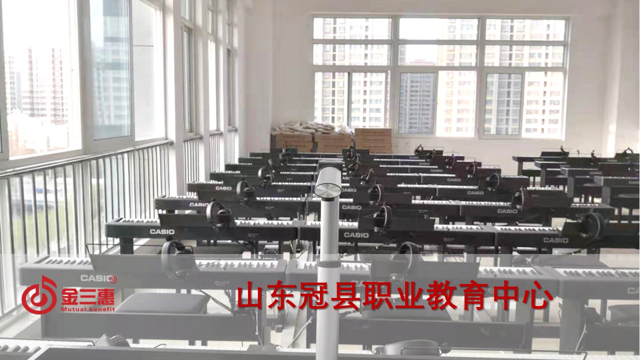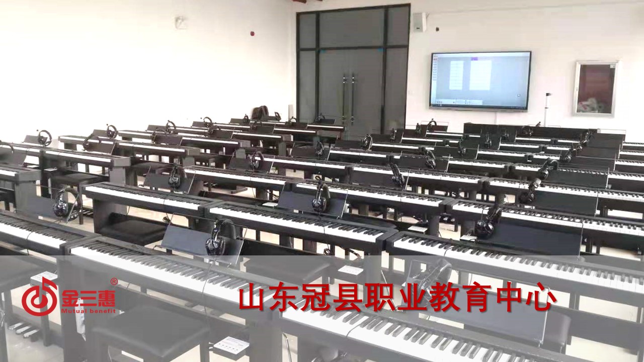 山東冠縣職業教育中心的電鋼琴教室正式開始使用,本校數字化音樂教室由北京金三惠科技有限公司負責提供、安裝、培訓。