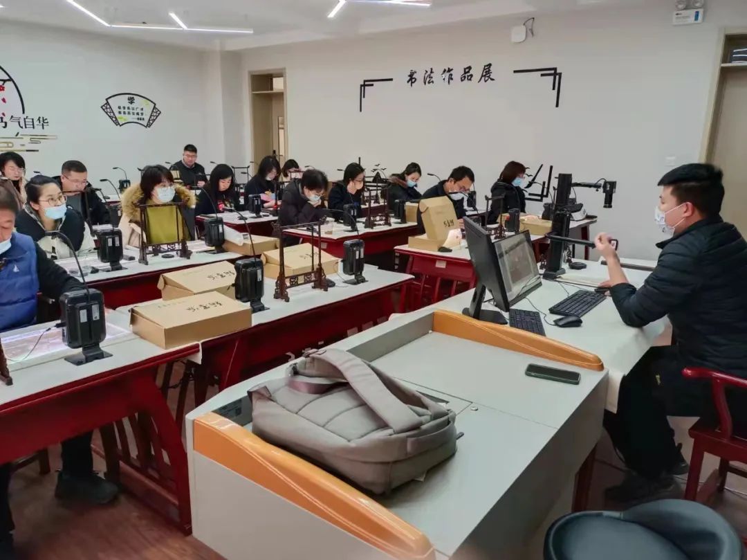胸藏文墨懷若谷,腹有詩書氣自華!羿飛翰墨派云書法教室于今年春季學(xué)期投入使用,羿飛教育派出專業(yè)講師進(jìn)行現(xiàn)場(chǎng)教學(xué)培訓(xùn)。學(xué)校對(duì)書法教學(xué)十分重視,召集初、高中所有語文老師參與學(xué)習(xí)。