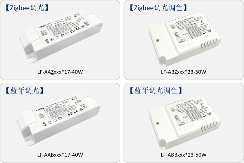 除有線調光方式,萊福德面板燈電源還有藍牙&Zigbee調光、調光調色四大無線方案,作為萊福德2021年布局智能市場研發的最新調光產品,該四大系列使用最新調光技術打造,擁有眾多調光優勢,如: