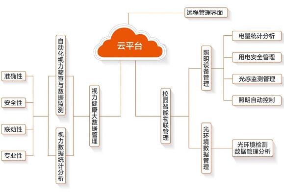 捷能通與科技公司開(kāi)展深度合作,搭建近視防控綜合管理云平臺(tái),該平臺(tái)集視力篩查數(shù)據(jù)管理、光環(huán)境數(shù)據(jù)管理、節(jié)能管理、設(shè)備自動(dòng)化于一體。通過(guò)智慧物聯(lián)新技術(shù)、可遠(yuǎn)程控制開(kāi)關(guān)、自動(dòng)采集測(cè)量、實(shí)時(shí)監(jiān)控?cái)?shù)據(jù),實(shí)現(xiàn)兒童青少年近視防控的智能化管理。