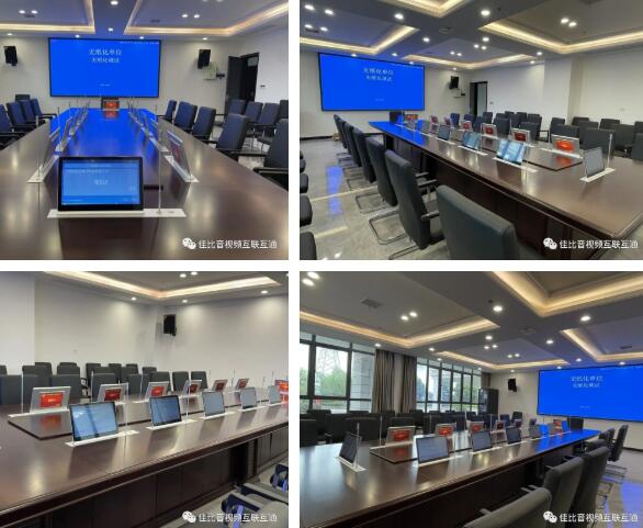按照該會議室布局,為其配置了專業(yè)擴聲系統(tǒng)、語音識別系統(tǒng)以及14個點位的無紙化雙顯升降一體終端(含會討話筒),以嵌入式方式安裝在會議桌面,令會議室整體整潔、美觀。系統(tǒng)平臺采用的是JUSBE(佳比)自主研發(fā)并擁有著作權(quán)的軟件系統(tǒng),集合了豐富強大的會議服務(wù)功能,只需觸控屏幕即可快速幫助參會者輕松掌握會議信息,高效完成會議內(nèi)容。