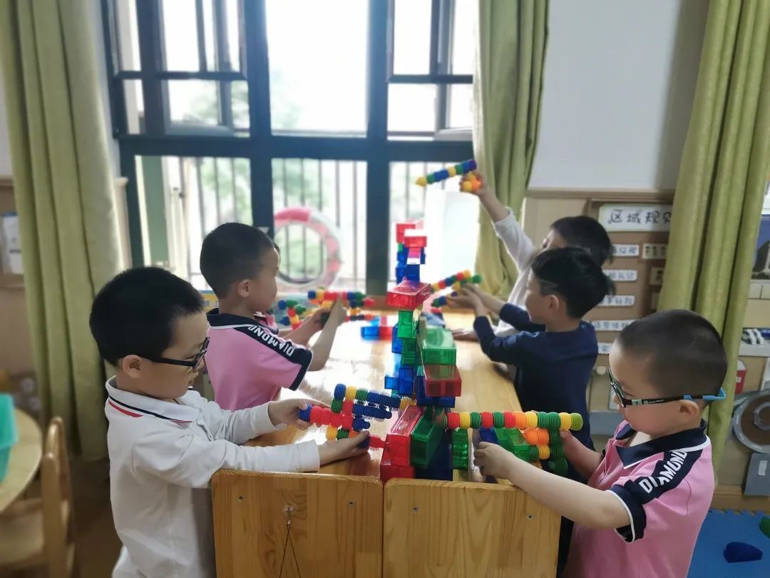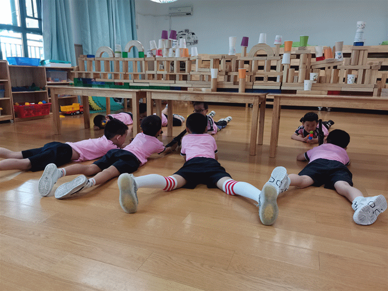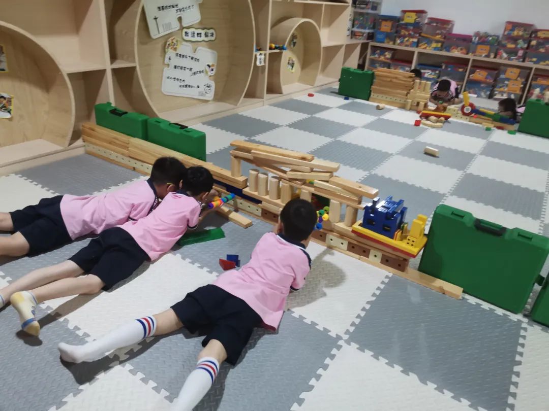 第二次到了游戲時間,幾個孩子直奔向建構區,又開始了他們打仗的游戲。這一次,他們設計的武器更加先進和復雜,比如新增了重型激光槍、導彈等。