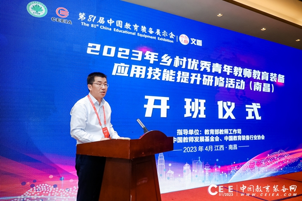 4月21日上午,2023年鄉(xiāng)村優(yōu)秀青年教師教育裝備應(yīng)用技能提升研修活動開班儀式在第81屆中國教育裝備展期間舉行。本次活動由教育部教師工作司指導(dǎo),中國教師發(fā)展基金會、中國教育裝備行業(yè)協(xié)會主辦,來自福建、江西、湖北、湖南的200余位鄉(xiāng)村優(yōu)秀青年教師共同參加。