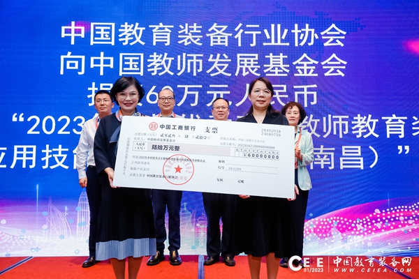 當(dāng)天,中國教育裝備行業(yè)協(xié)會向中國教師發(fā)展基金會捐贈60萬元資金,啟動本次研修活動。北京文香信息技術(shù)有限公司、上海東方教具有限公司、北京威成亞實驗室設(shè)備有限公司、山東建榮教學(xué)設(shè)備有限公司、斯沃德教育科技股份有限公司、北京東方中科達科技有限公司、廈門立達信照明有限公司、北京世紀超星信息技術(shù)發(fā)展有限責(zé)任公司等8家協(xié)會會員單位也向本次研修活動捐資捐物,奉獻愛心。