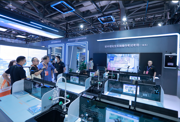 本屆展會上,童園科技針對初中理化生實驗考試、教學(xué)、實訓(xùn)不同場景的應(yīng)用需求,在展區(qū)打造出以數(shù)字化智能實驗室、初中理化生實驗操作考試考場等多種應(yīng)用場景,以豐富的產(chǎn)品和應(yīng)用方案向現(xiàn)場嘉賓和觀眾們進(jìn)行實景展示,詮釋多維布局和技術(shù)實力。