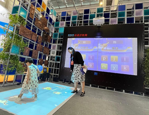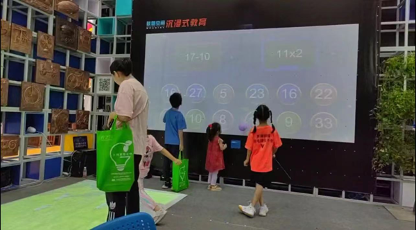 《互動投影學習系統》除了“A夢計劃”,博覽會上還展示了其他與學習相關的產品和技術,如互動投影學習系統。這種系統通過游戲化學習的方式,讓學生通過玩游戲來學習知識,從而提升學習的趣味性和效率。其中,數學籃球和單詞追追樂是兩個特別引人注目的項目。這些項目不僅幫助學生提高學習和記憶能力,還通過游戲增強了學生的身體協調性和力量。數學籃球:1、通過漢字發音幫助學生更好地學習和記憶學過的漢字;2、提升學生學習的興趣和主動性;3、通過投球擊打,提升學生的身體協調性和力量。