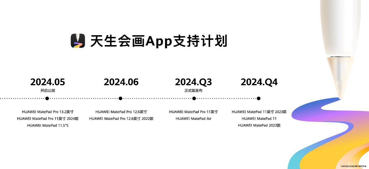 伴隨此次華為MatePad Pro 13.2英寸羅蘭紫的發布,天生會畫App正式開啟公測。天生會畫App云集眾多強大且易用的繪畫功能,真實、專業、智慧、易用,滿足專業創作者和繪畫愛好者等各類人群的創作需求,帶來零門檻的藝術生活體驗。華為MatePad Pro 13.2英寸羅蘭紫首發即預裝天生會畫App,其余版本升級HarmonyOS 4.2版本即可支持。其他更多產品將逐步開放支持,擁有更多功能的正式版本也將于2024年第三季度發布。