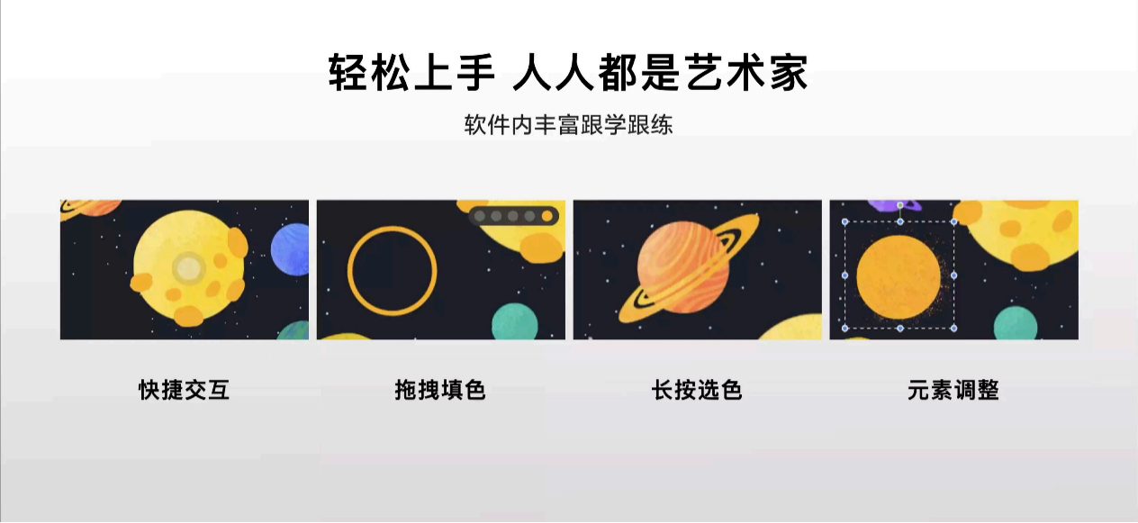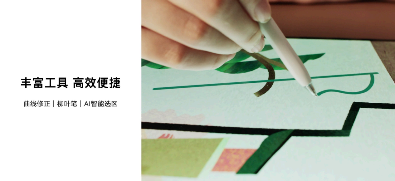 天生會畫App同步帶來AI智能選區、快捷操作手勢、一筆成形等眾多智慧功能,賦能便捷繪畫體驗,讓藝術創作更高效。全新AI智能選區功能,輕松摳出畫作中的元素。快捷操作手勢支持雙指撤銷、三指重做、單指長按拾色等豐富交互手勢,極大地提升了軟件的易用性和操作效率。一筆成形不僅可以輕松繪制標準圖形,更支持曲線任意修正。該軟件還內置不少創作者都喜愛的繪畫工具——柳葉筆,助力用戶進行高效出色的繪畫創作。