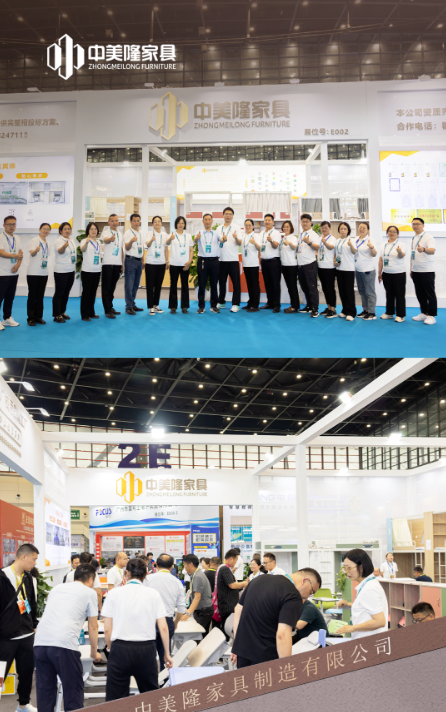 中美隆家具作為校園家具企業代表,以卓越的產品實力吸引眾多客戶前來咨詢。現場工作人員與參觀者親切交流和示范操作,向各位參展商和客戶展示了產品的優勢,同時為他們提供了專業的技術服務和應用方案。