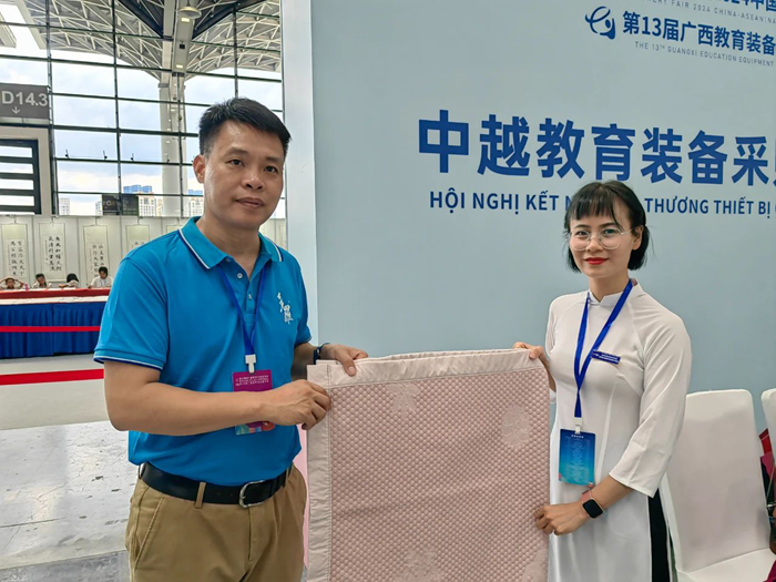 越南采購商赴廣西教育裝備代表單位——廣西南寧市浩耀服飾有限公司數字現代化生產車間和南寧四軒科教辦公用品有限公司廠房實地參觀考察,實地感受服裝、家具生產第一線,促進中國—東盟教育交流,加強雙方經貿交流,推動中國與東盟國家間的貿易合作。