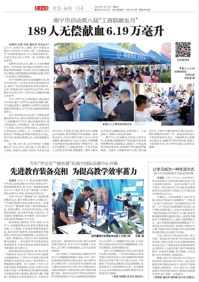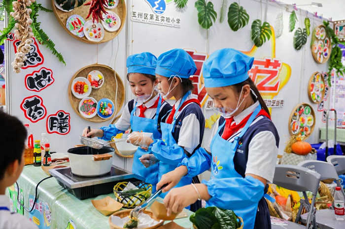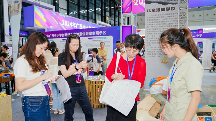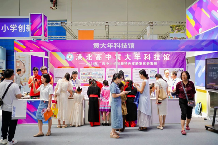 廣西中小學創新實驗優秀案例展示交流活動連續7年與廣西教育裝備展同期舉辦。有來自14個地市的創新特色實驗室優秀案例,在7號展廳中,淮山棗泥膏、紫蘇炒釘螺、牛腩蘿卜煲等美食吸引眾多食客的目光,紛紛駐足品嘗。這些美食是玉林市玉州區第五實驗小學惠秀廚藝勞動教育實踐成果。據該校學生介紹,他們由老師帶領學做美食,不僅鍛煉了動手能力,還了解了食物的屬性,也學會了更加珍惜食物。