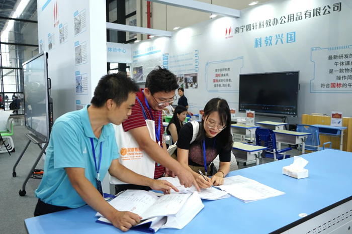 推進廣西教育數字化轉型和智能化升級,引領企業品牌建設,推動優秀產品在教育行業中的廣泛應用,由廣西教育裝備行業協會組織全區各市、縣(市、區)電教站、裝備站(中心),各有關院校近150名教育裝備行業專家在第13屆廣西教育裝備展示會上對參展產品進行現場遴選。本次活動增加的蓋章打卡環節促進了教育裝備專家與參選企業的互動和交流。