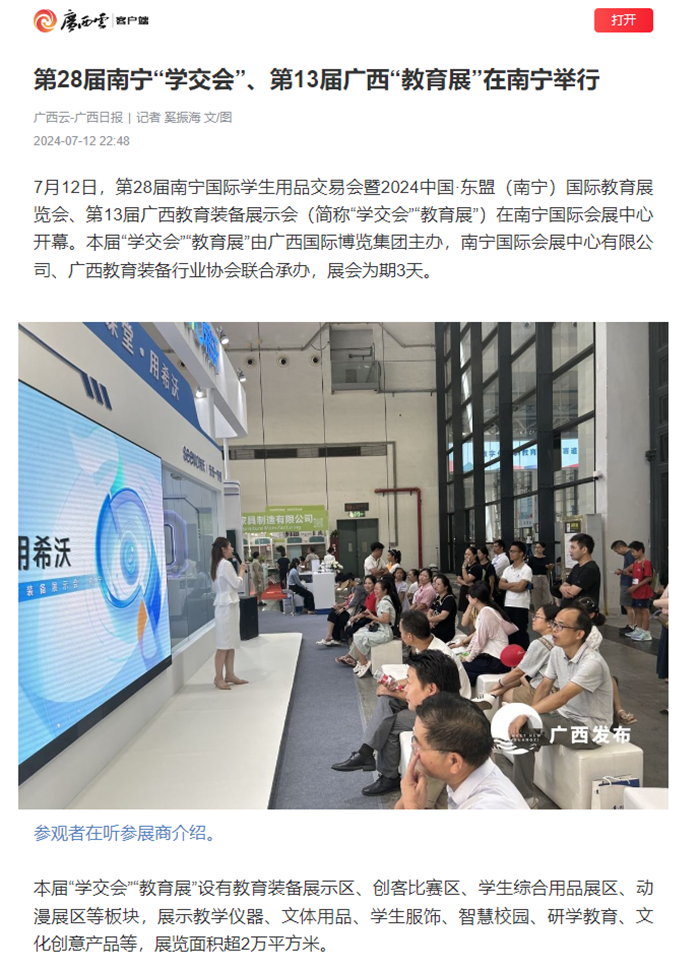 由中國教育裝備行業協會、廣西教育技術和信息化中心指導,廣西教育裝備行業協會主辦,各市(縣、區)裝備站、電教站協辦的為期三天的第13屆廣西教育裝備展示會于7月14日在南寧國際會展中心D區圓滿落幕。