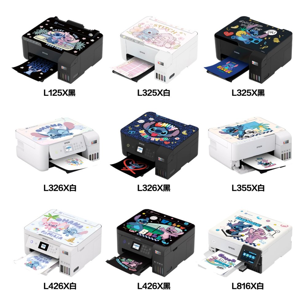 愛普生迪士尼史迪奇系列合作款機身貼膜畫面既有史迪奇活潑萌趣的經典畫面,又有史迪奇與安琪同框的有愛時刻,可愛又溫馨;本次還特別推出兩種“閃亮款”貼膜,適用于墨倉式®彩色無線多功能一體機L426X,局部燙金與鐳射工藝讓這兩款貼膜更加“閃閃惹人愛”。合作款墨倉式®打印機型號豐富,從入門級家用到高品質6色墨倉式®,能滿足多種家庭及小型商用的打印需求,搭配史迪奇系列機身貼膜,打印機顏值直接到達next level,即刻開啟奇趣體驗。