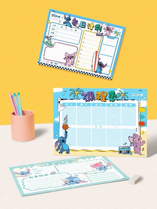 陽光活力課程/計劃表、繽紛趣玩涂色卡和多彩奇妙作業紙是家庭學習與培養興趣愛好的好幫手。小朋友在學習之余不論是想和史迪奇同框耍帥,又或是與安琪一起甜美可愛,史迪奇相伴相框都能滿足。