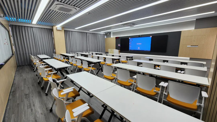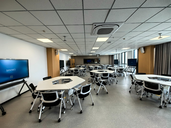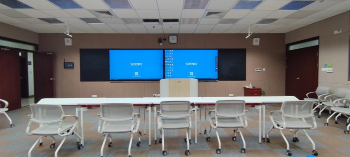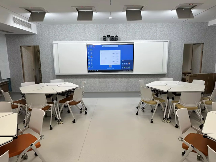 該項目需要在校內(nèi)建設(shè)一個結(jié)合精品課程錄制+AI賦能培訓(xùn)分析的多功能媒體教室,希沃錄播交付服務(wù)團(tuán)隊為校方提供了整體的項目解決方案介紹與工程裝修設(shè)計,為教室配備了先進(jìn)的錄播設(shè)備和智能教育交互平板,AI算力賦能系統(tǒng),支持課程錄制、在線教學(xué)和數(shù)據(jù)分析等功能。最終呈現(xiàn)效果充分滿足以實現(xiàn)技術(shù)中心小組日常進(jìn)行學(xué)術(shù)研討、人員專業(yè)技能培訓(xùn)等各種教學(xué)與研討需求。