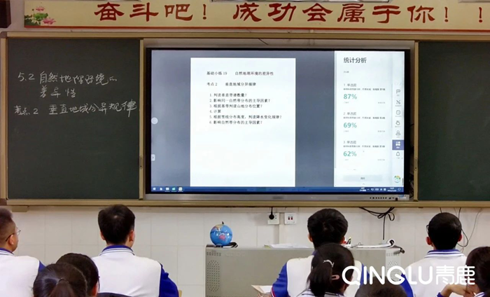 在課堂測驗練習與數據反饋方面,張老師主要應用青鹿智慧紙筆系統開展了3次由簡到難的課堂檢測,從“針對單個知識點的測驗練習——圖文材料分析的測驗練習——綜合知識應用的主觀題測驗練習”,且通過作答數據的即時分析與反饋,快速掌握全班學生每個階段的知識內化情況,以此展開針對性講解并靈活調整課堂教學進度,更加精準的反饋教學效果,提升教學效率。