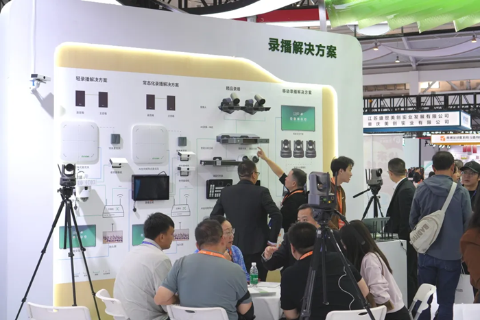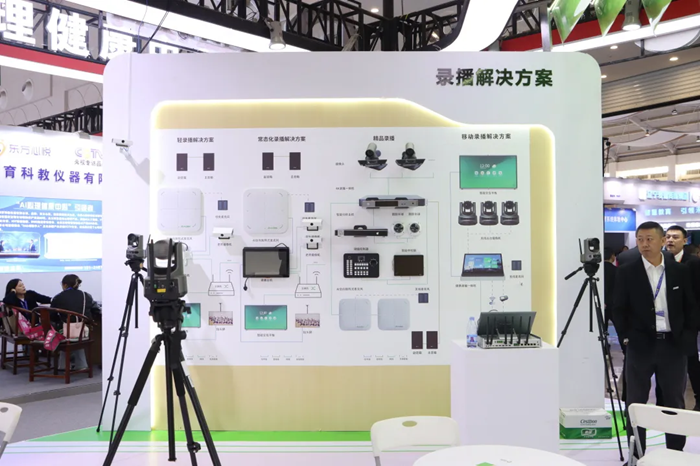 通過構建真實場景,并結合現場解說的形式,為參展觀眾講解了最新錄播解決方案的應用。據介紹,重磅升級的安道教育錄播解決方案具備課堂錄制、巡課、直播教學、遠程互動等功能,同時搭配智慧講臺、高清攝像機、AI全向矩陣式麥克風、領夾麥克風等教學設備,為教師提供更優質的教學環境和授課體驗,打造高質量的課程視頻資源,從而全方面推動優質教育資源在區域乃至全國范圍內進行共享,實現教育資源均衡化。