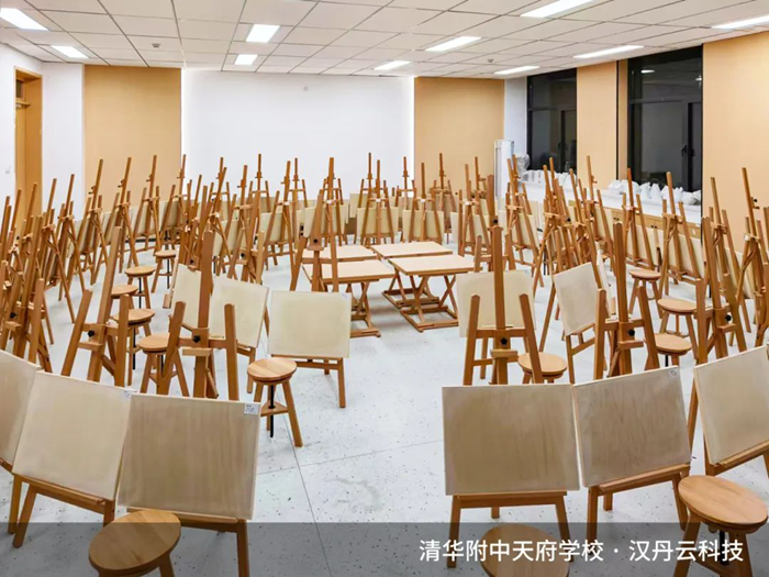 美育環境的營造是美術課堂的有效延伸與補充。為促進學生多元化發展,清華附中天府學校與漢丹云攜手打造智慧美術教室、素描教室、專業美術教室、國畫教室、美術教具教室等,實現校園內部美術情景教學,滿足未來教育的生態教學觀。