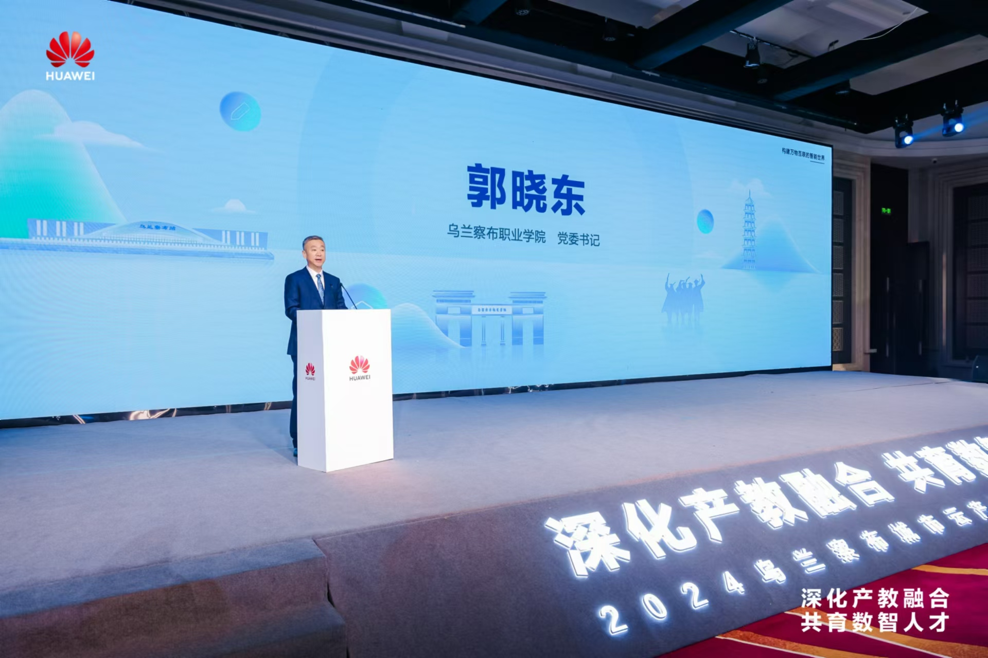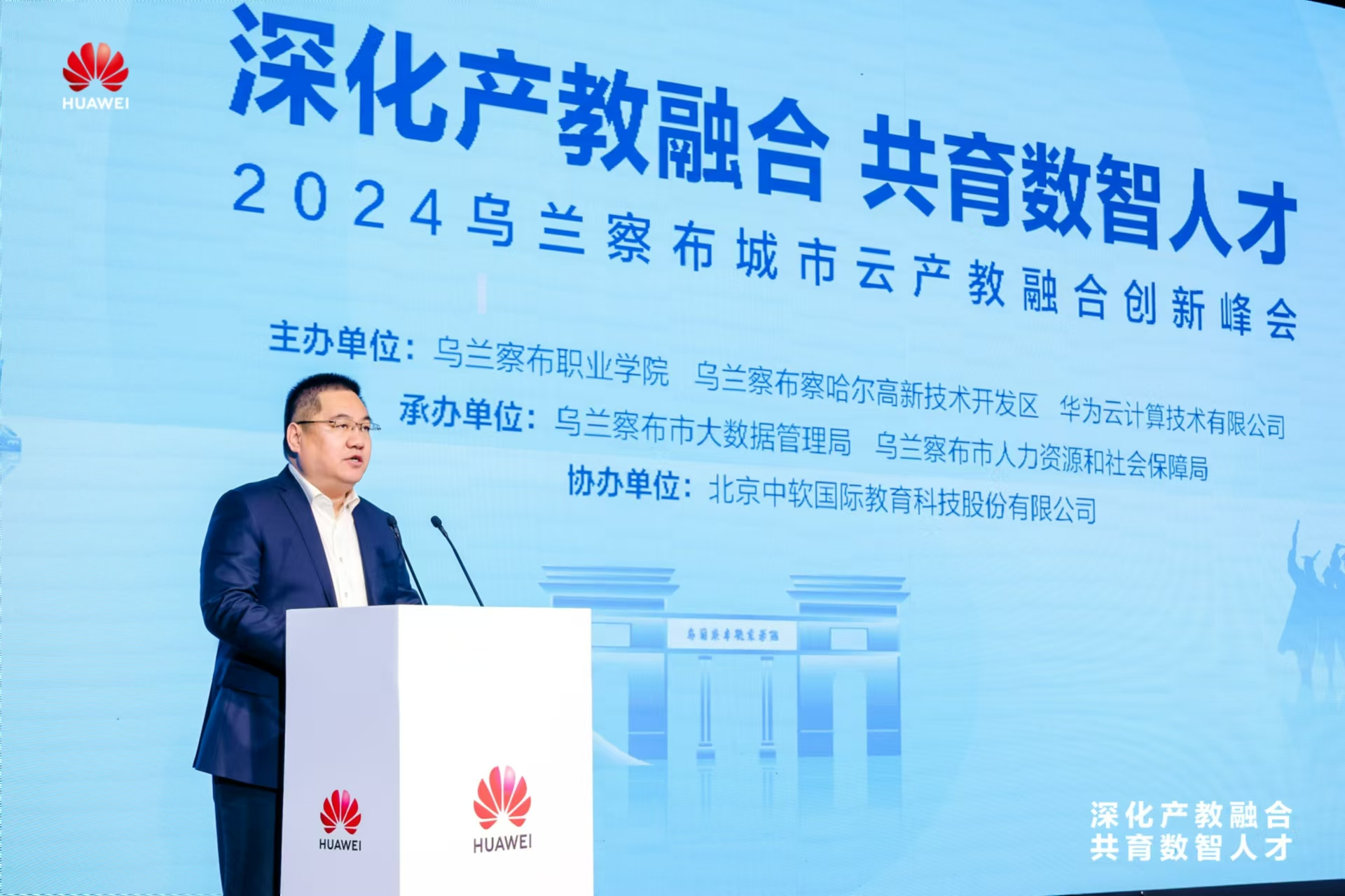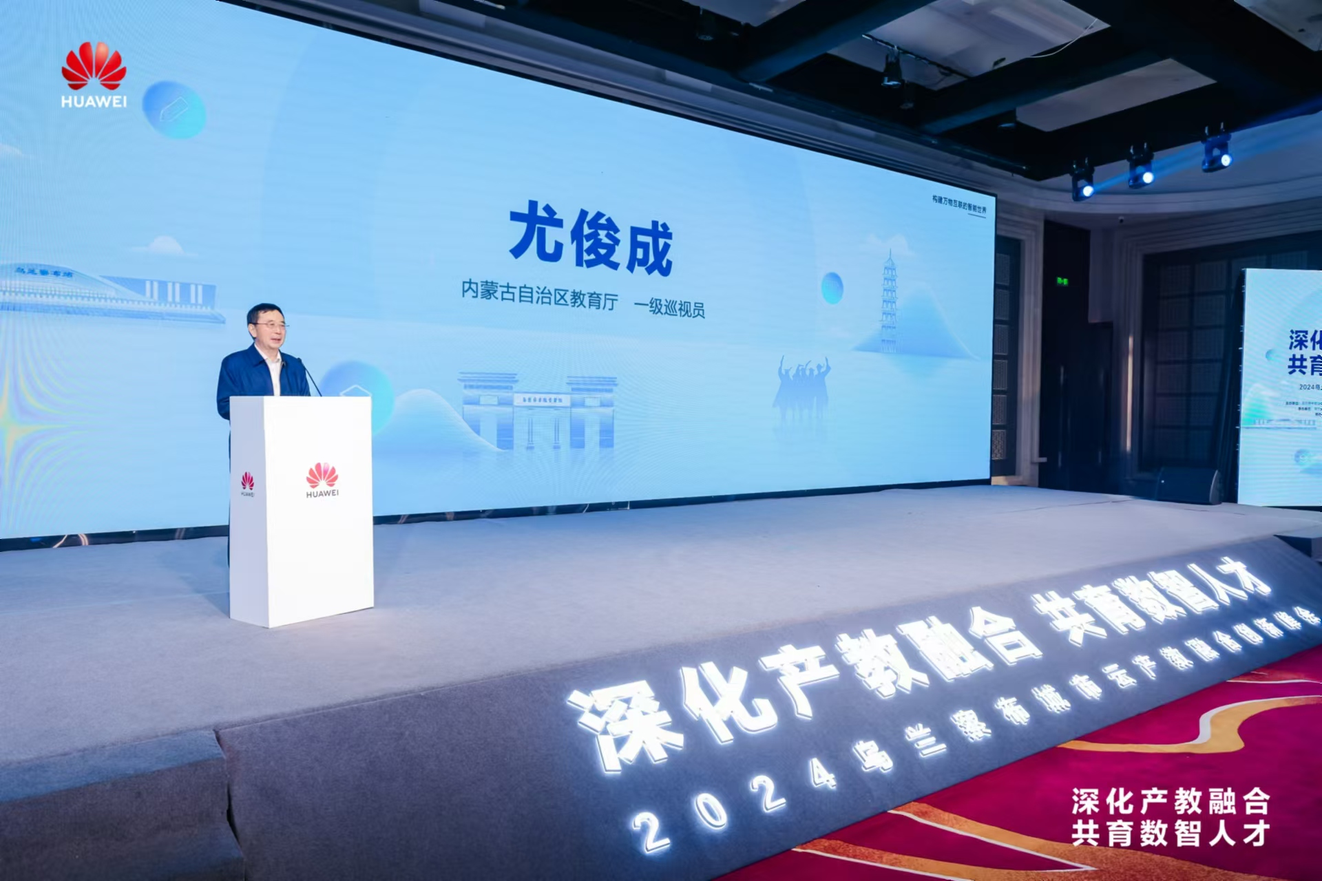內蒙古自治區教育廳一級巡視員尤俊成首先肯定了本次峰會定位精準,根植于本土,將為本地職業教育帶來新的活力和機遇。其次他表示,產教融合已然成為職業教育的必由之路,職業教育的發展離不開職業院校與企業的攜手共進,相互成就,共生共長,并對烏蘭察布職業學院與華為攜手在產教融合方面的合作成果給出高度評價。“我堅信本次大會將成為引領產教融合創新發展的高規格盛會,為大數據產業的繁榮和區域經濟的騰飛貢獻智慧和力量。”他最后說道。