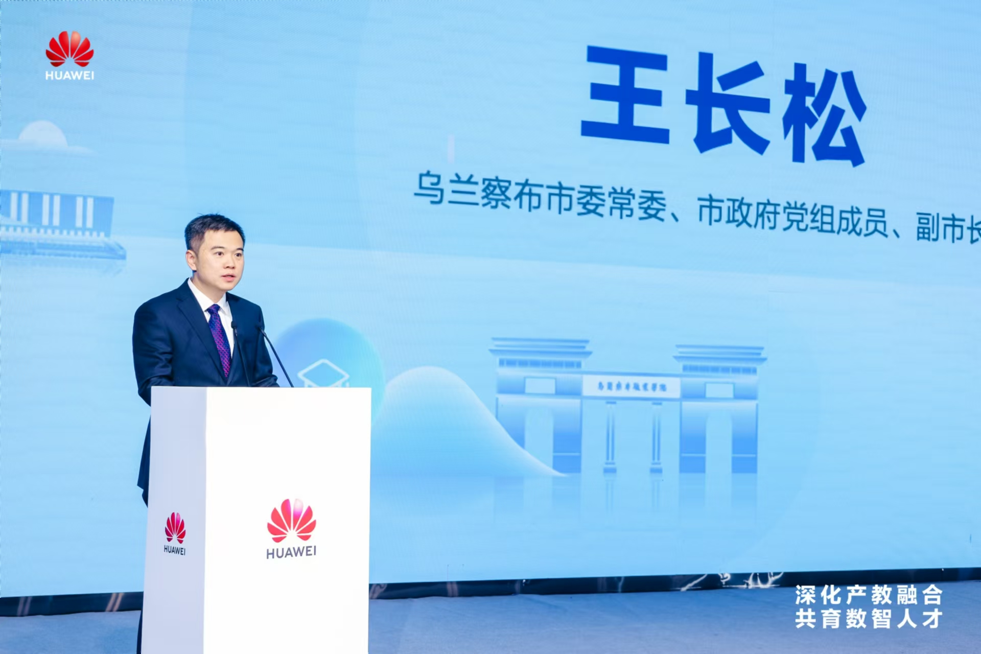 烏蘭察布市委常委、市政府黨組成員、副市長王長松在致辭中向與會嘉賓傾情推介了烏蘭察布,其不僅是算力之城、綠電之城、草原之城,更是樞紐之城、清涼之城和健康之城。最后他表示:“此次城市云產教融合創新峰會,匯聚數字智能力量,助推職業教育發展,必將推動烏蘭察布教育發展方式和人才培養模式變革,為烏蘭察布高等教育、職業教育帶來重大發展機遇。期待大家為烏蘭察布高質量發展建言獻策、來烏蘭察布投資興業,我們將以最大的誠意、盡最大的努力,為大家做好保障和服務。”
