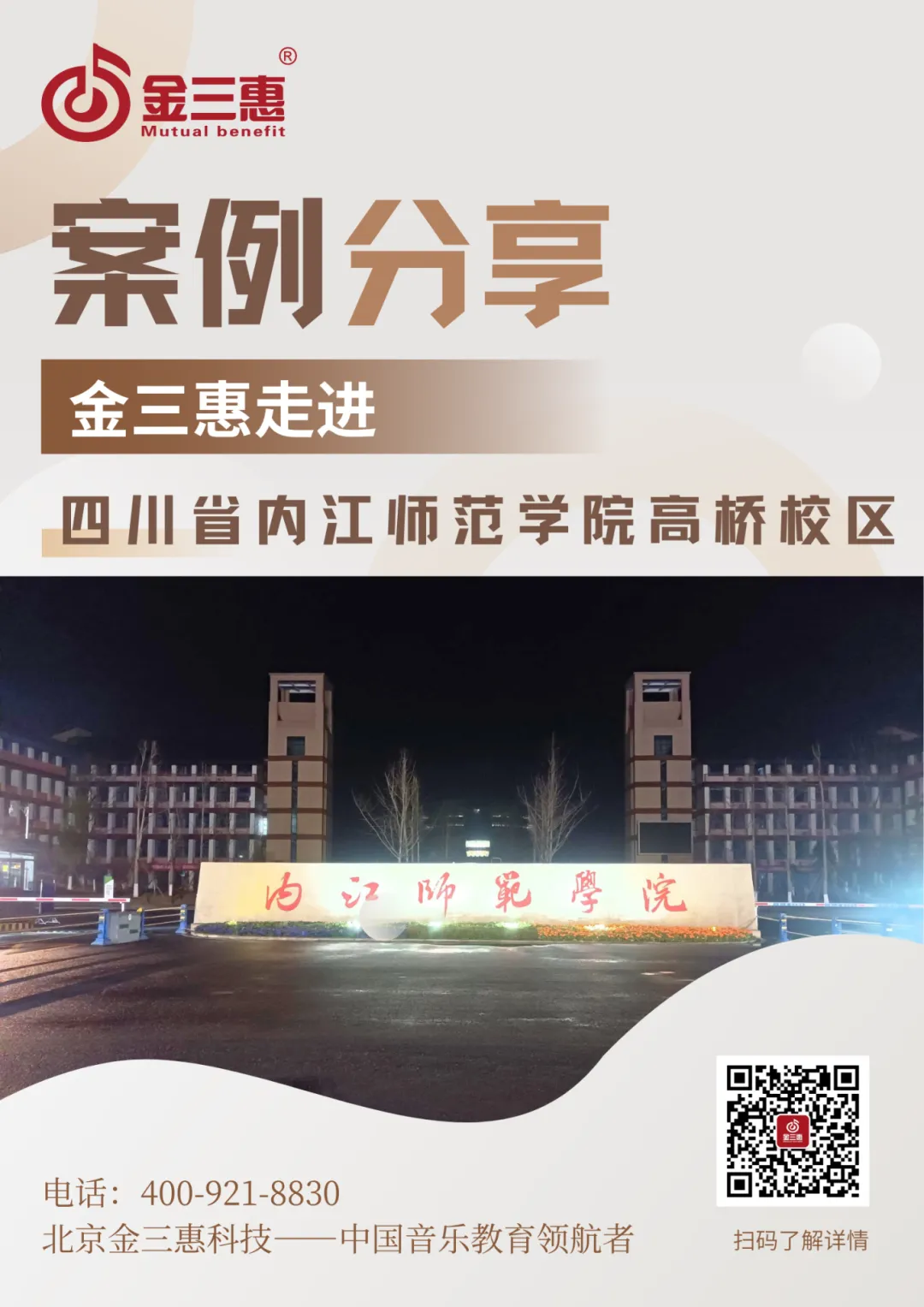 2025年3月,金三惠數字綜合音樂教室走進內江師范學院高橋校區,為學校提供了30+1的智慧音樂素養教室,配備了金三惠數字音樂教學系統、電鋼琴、數字音樂教學儀等教學教具等。