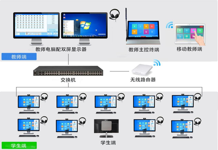 系統(tǒng)特點(diǎn):學(xué)生終端機(jī)數(shù)碼設(shè)計(jì),采用DSF數(shù)字信息處理技術(shù),采用5.1寸大屏幕液晶顯示。外語(yǔ)學(xué)習(xí)自助餐模式,學(xué)生可根據(jù)自身情況選擇外語(yǔ)資料,并在學(xué)生端進(jìn)行測(cè)試。“MF3 Database”豐富齊全的語(yǔ)言素材庫(kù),采用當(dāng)今世界最主流的MP3/WAV音頻文件格式,用很小的存儲(chǔ)空間保存海量音頻素材,學(xué)生可隨時(shí)調(diào)取。查字典單詞標(biāo)準(zhǔn)讀音屏幕點(diǎn)詞翻譯(電子辭典模糊查詢),當(dāng)學(xué)生閱讀文本遇到生詞時(shí),可用方向鍵移動(dòng)光標(biāo),即可翻譯。口語(yǔ)錄音超級(jí)數(shù)字錄音,錄音時(shí)間無(wú)限制、自主錄音口語(yǔ)訓(xùn)練,統(tǒng)一由教師機(jī)硬盤(pán)保存。