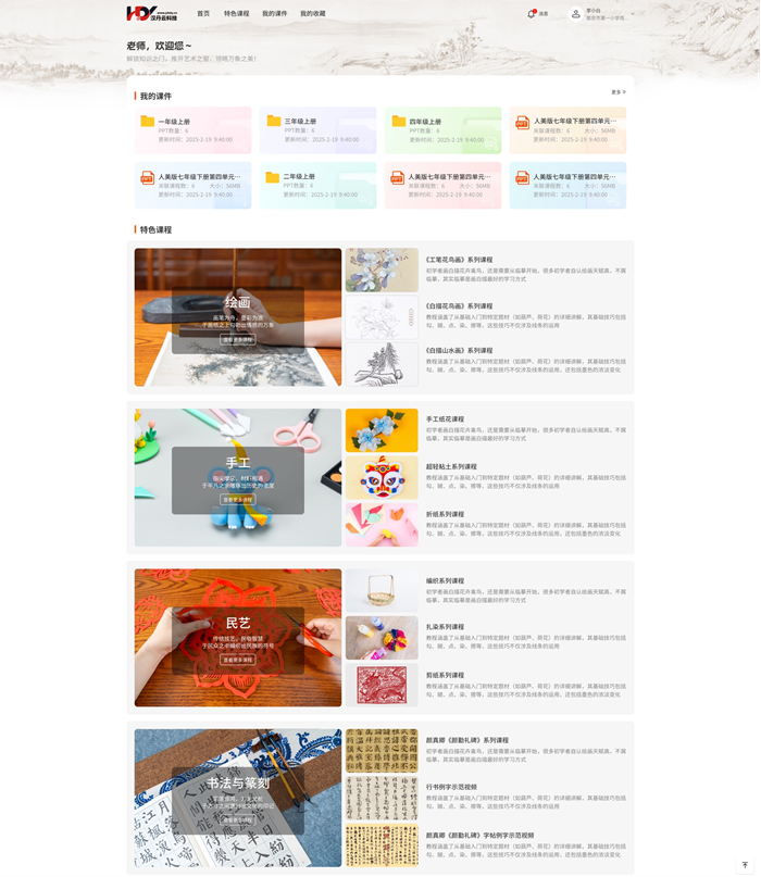 平臺多端兼容,實現“隨時隨地開展美育教學”;以短信驗證碼秒登錄模式,兼顧安全與效率;支持“關鍵詞+分類”雙重檢索,縮短資源查找時間。初始配置5G存儲,滿足課件存儲需求;支持PPT全生命周期操作與輕量化課件播放;配備專業批注工具及個性化管理功能,適配師生差異化需求。
